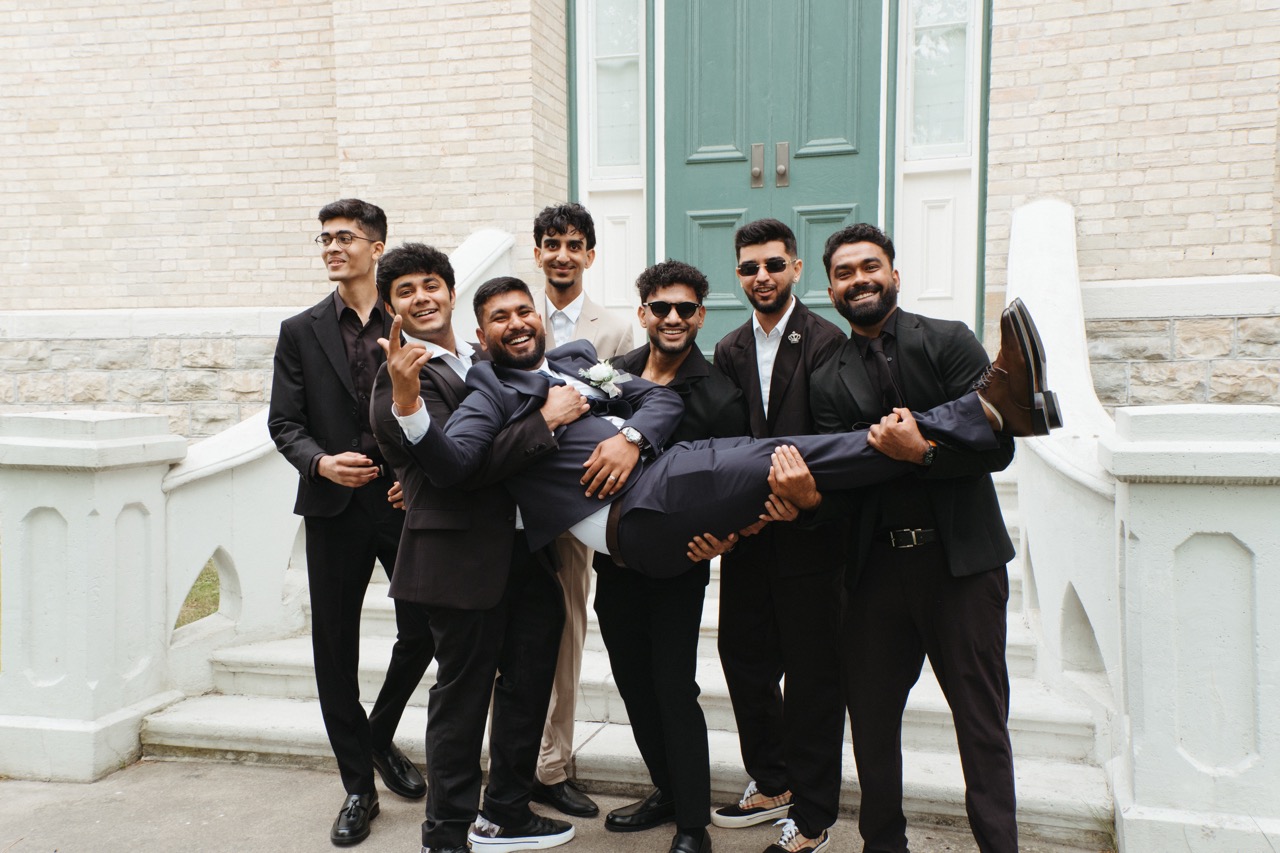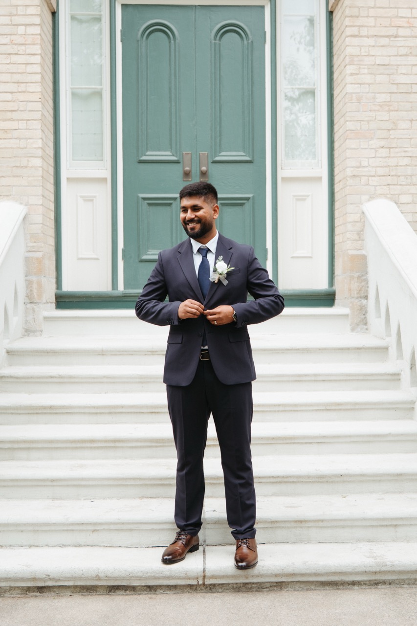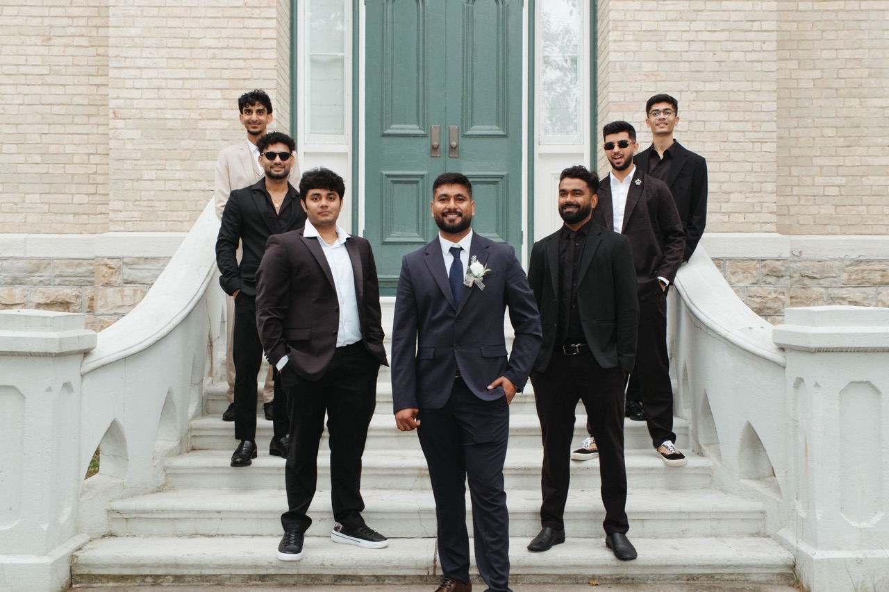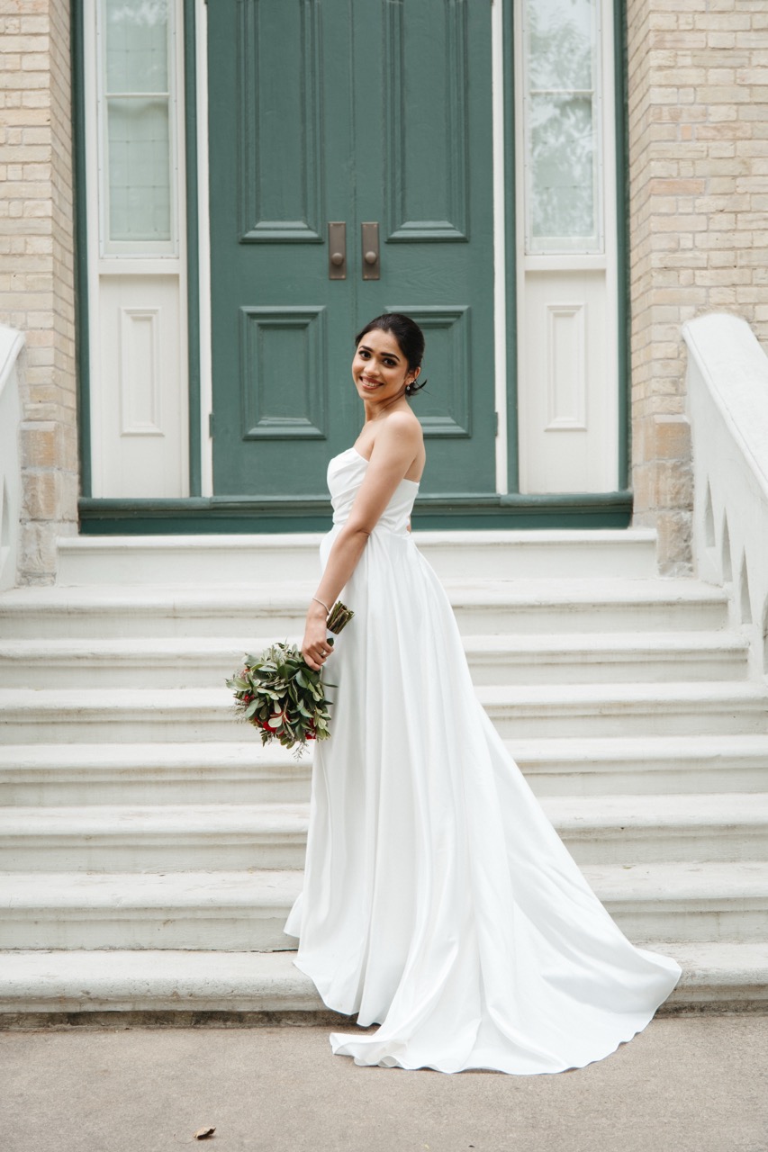 It was a very intimate civil ceremony. We started by capturing the ceremony, then took the couple to a gorgeous staircase with timeless green doors. We did a quick e-shoot there, along with family portraits and a few fun shots with friends.