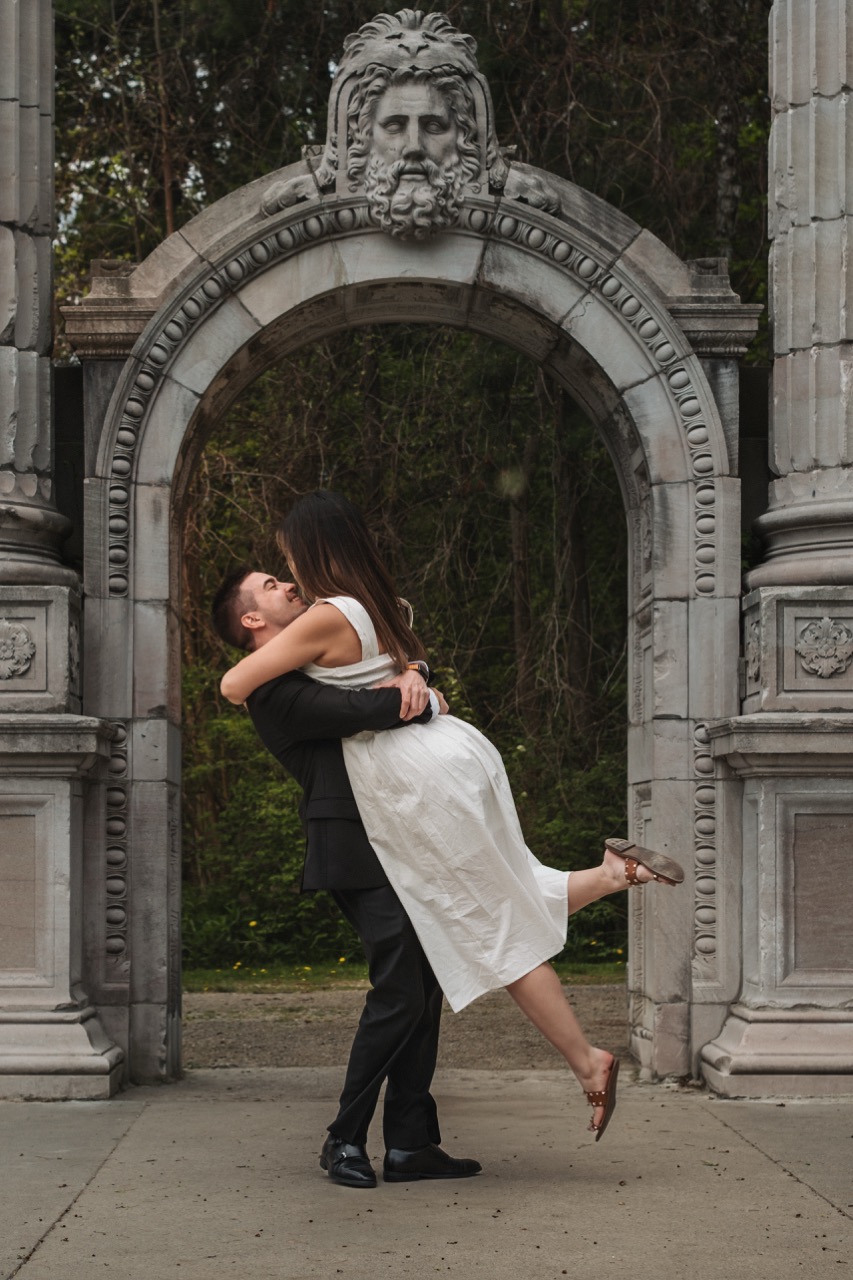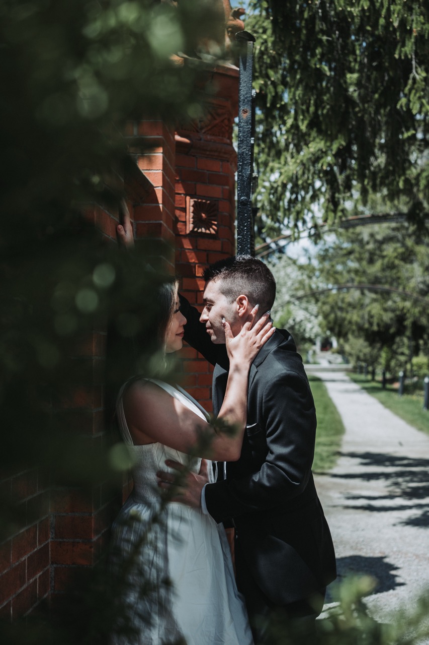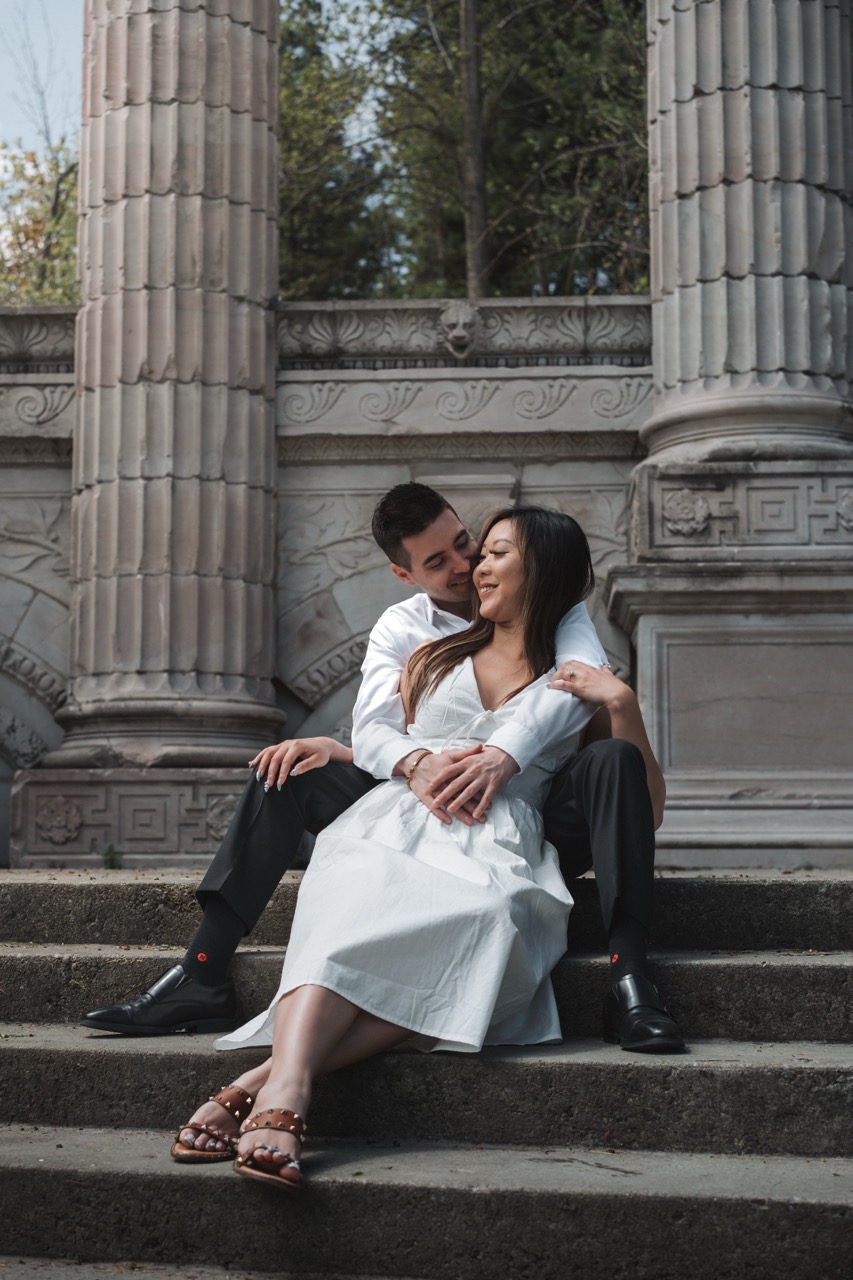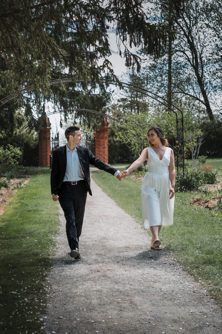 This was one of our Love Story shoots at Guild Park and Gardens in Toronto. Rene wanted a mix of timeless and candid photos, with a focus on the details like hands, rings, and the spring florals around them.