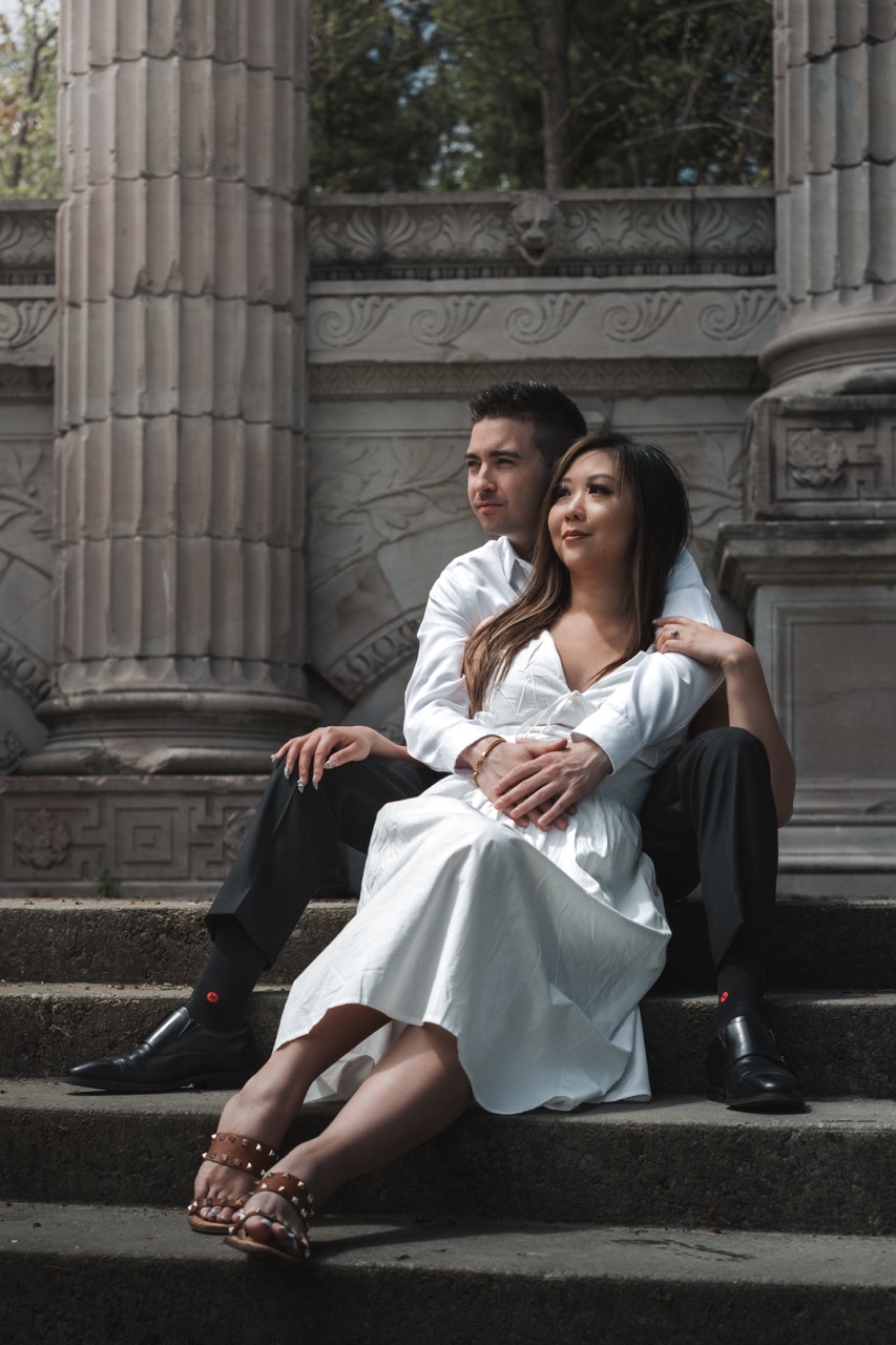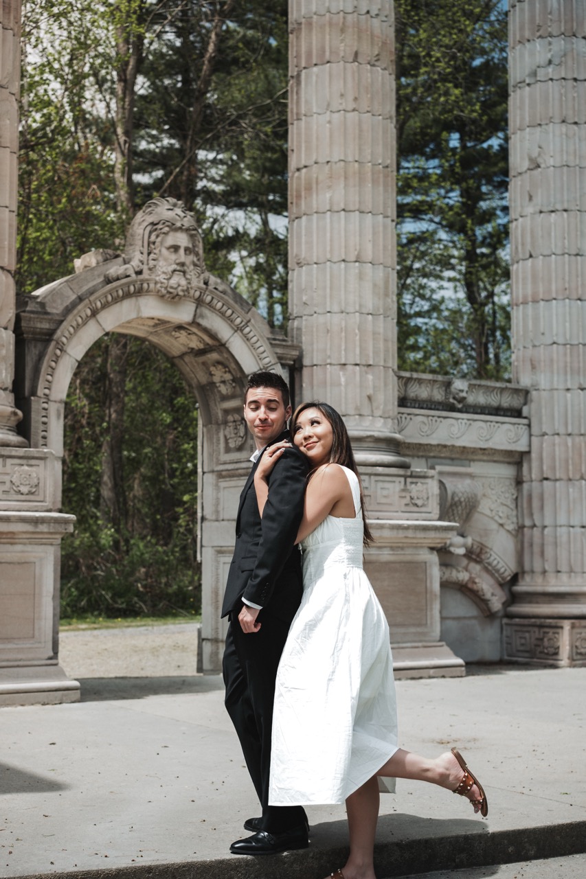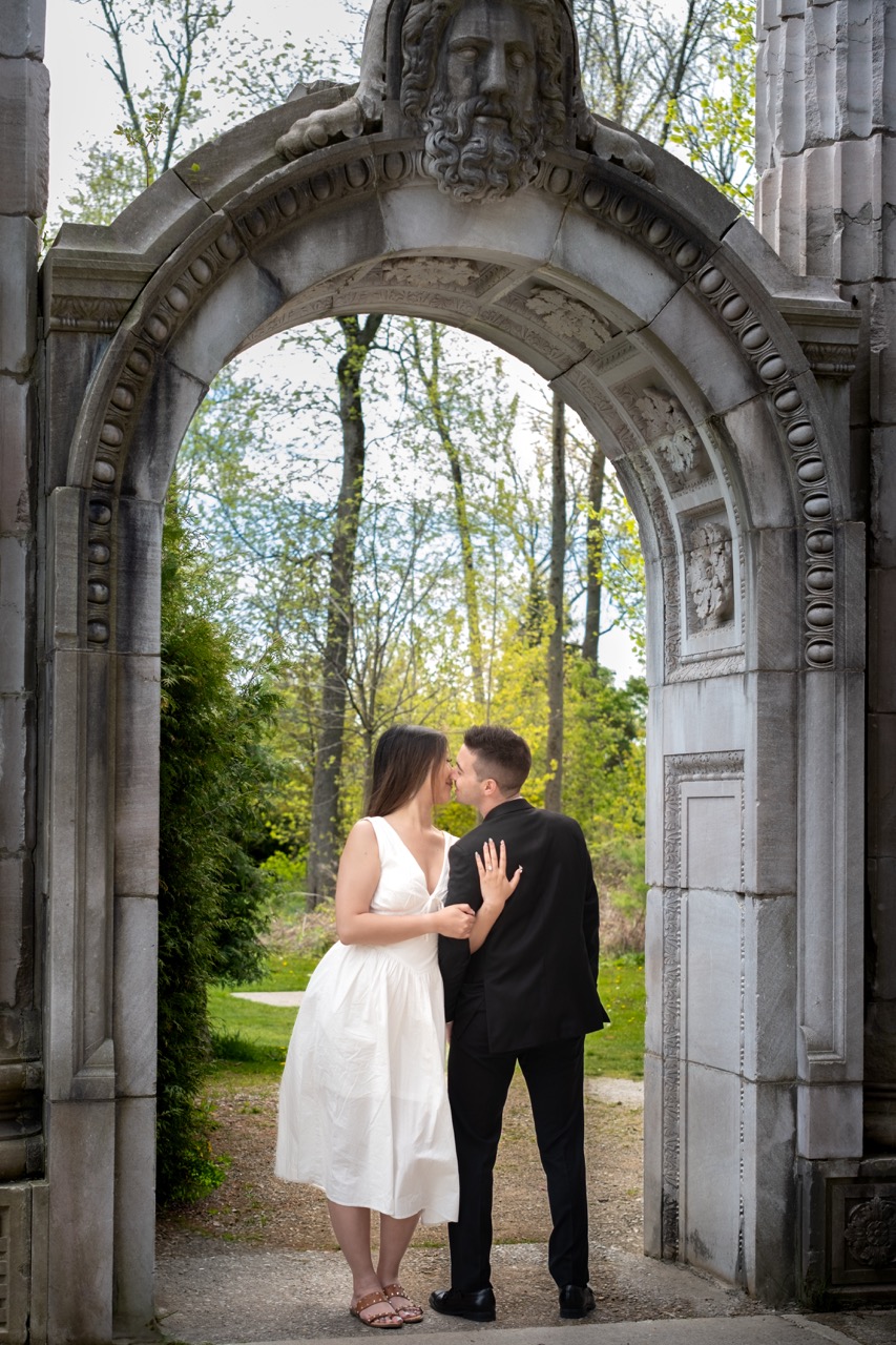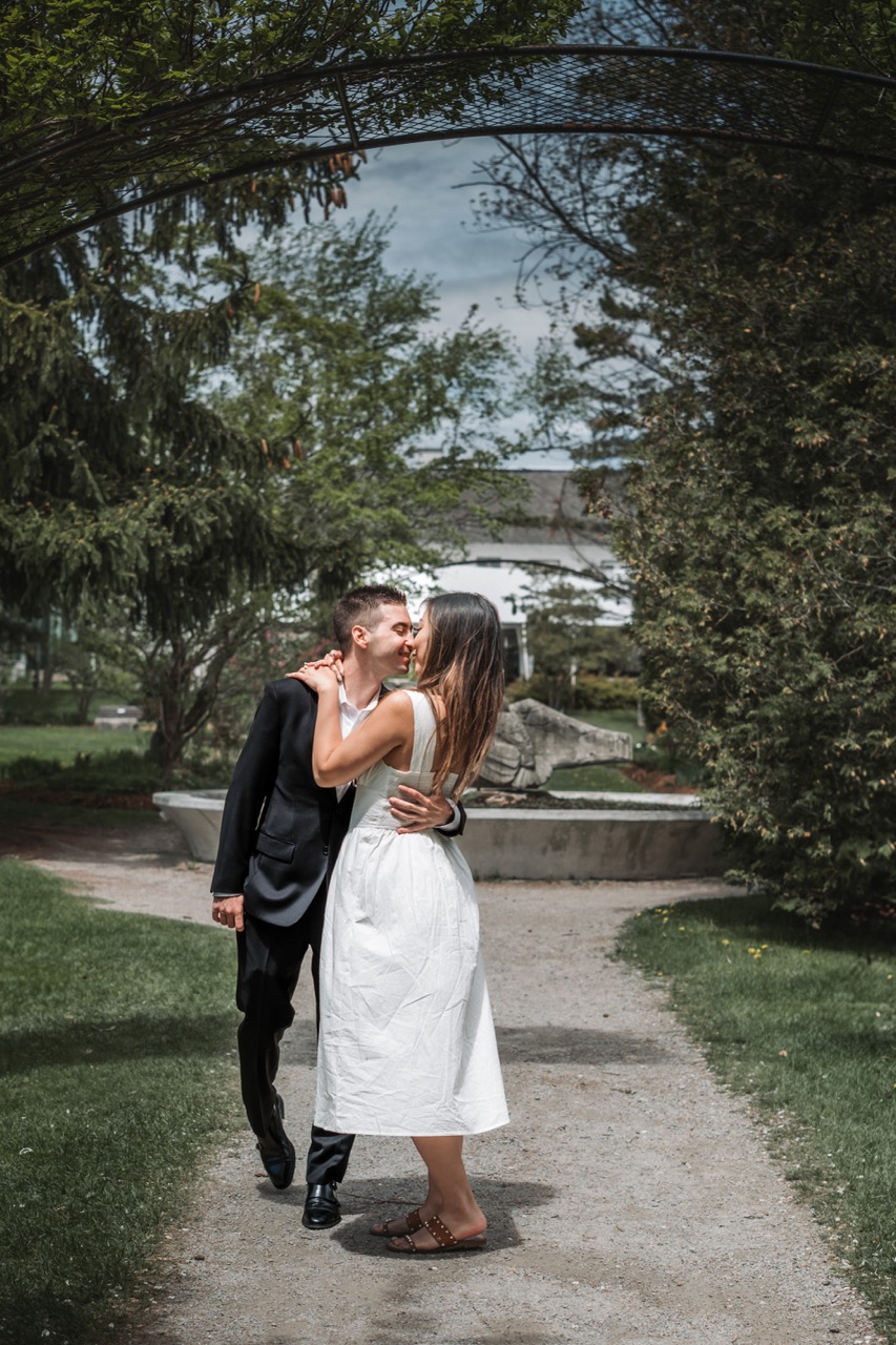 This was one of our Love Story shoots at Guild Park and Gardens in Toronto. Rene wanted a mix of timeless and candid photos, with a focus on the details like hands, rings, and the spring florals around them.