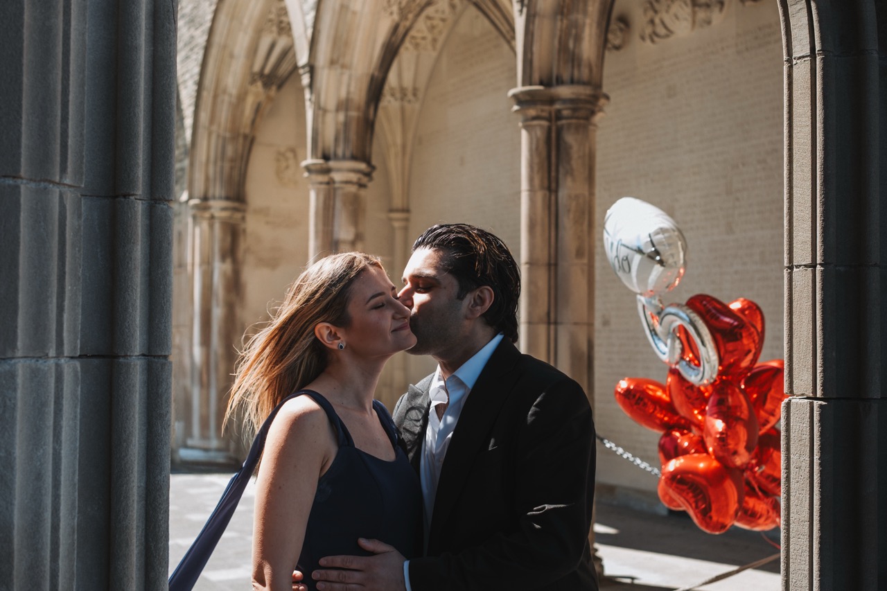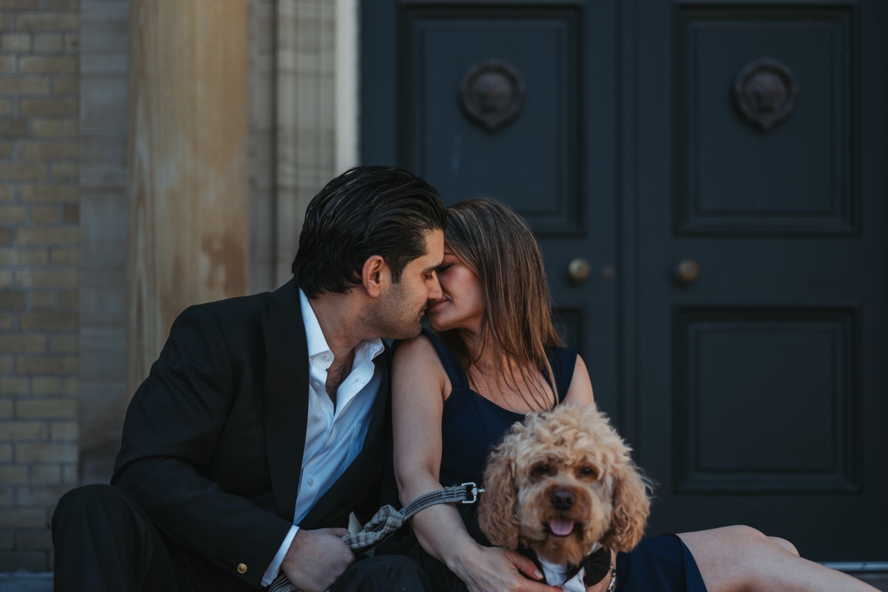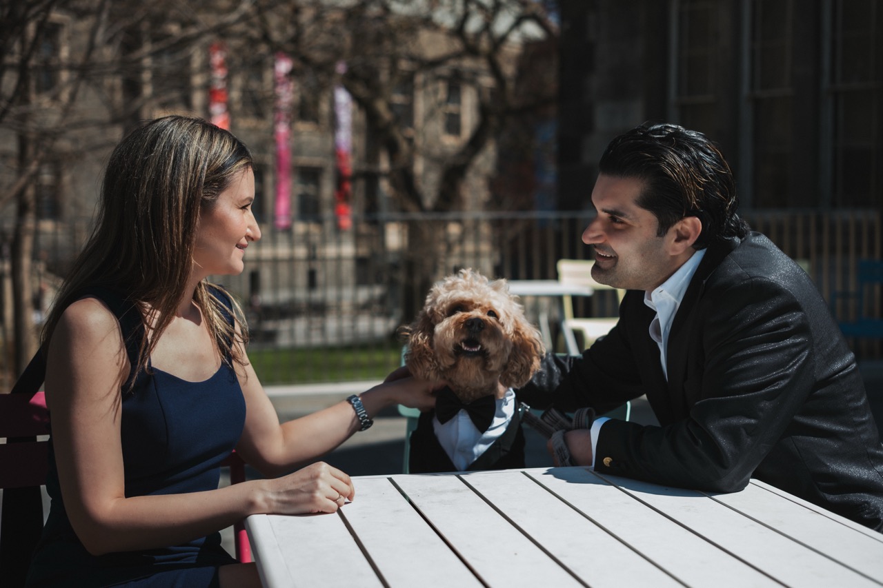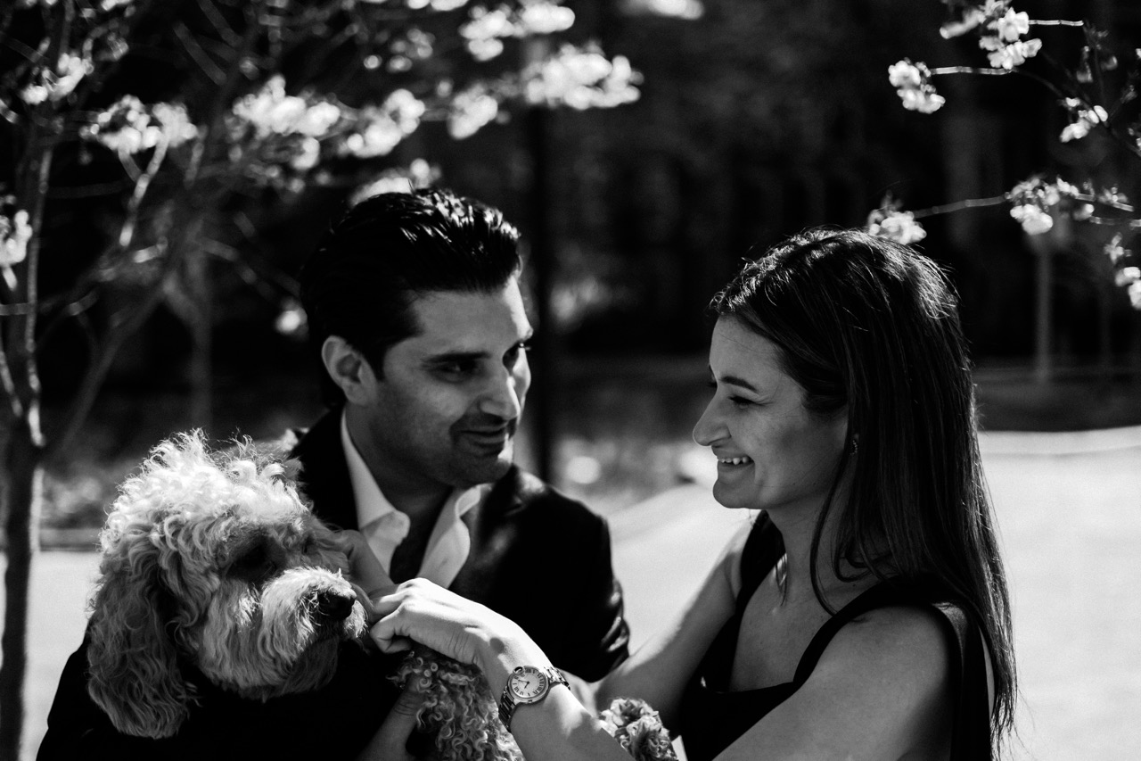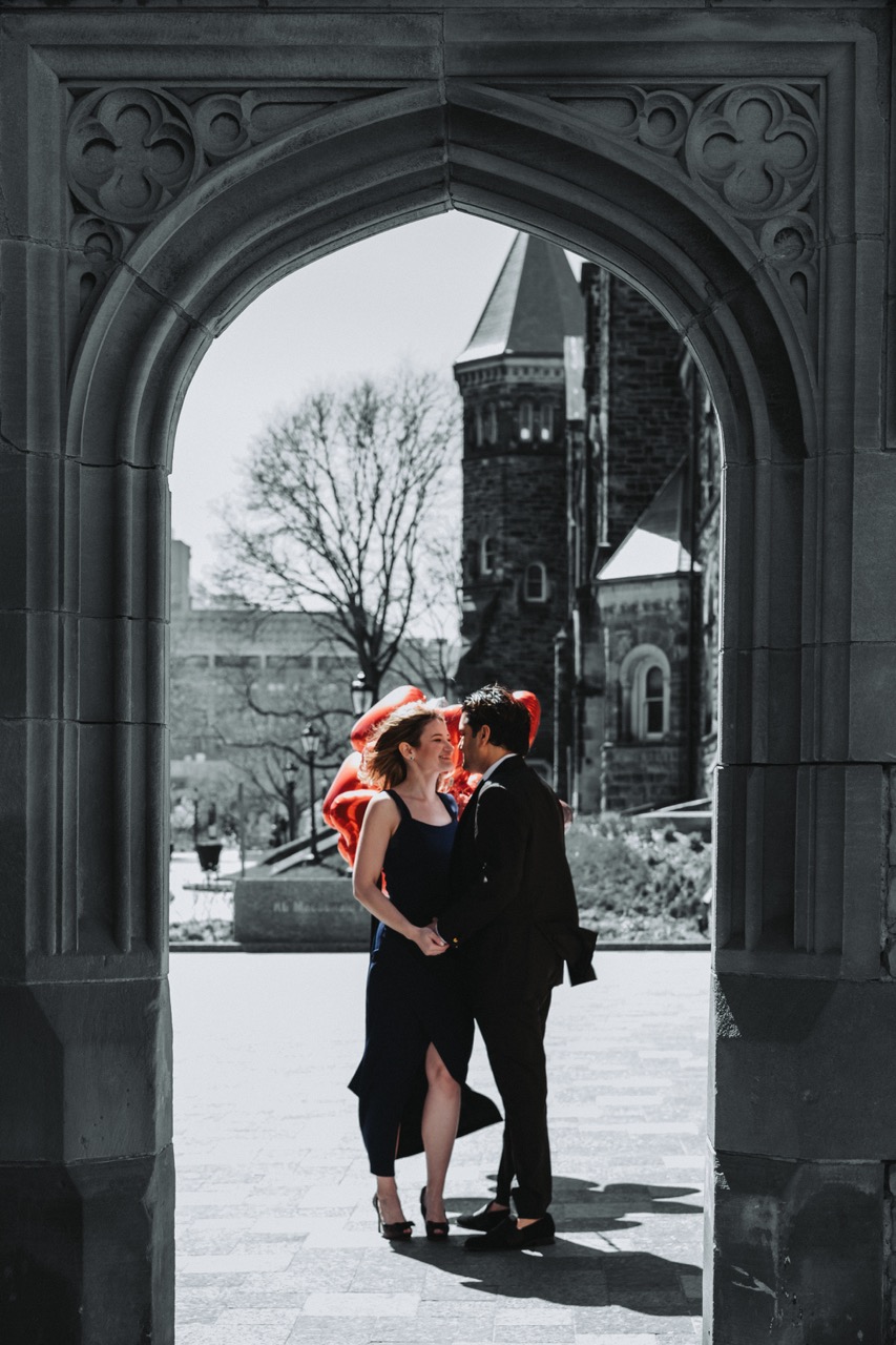 This was one of our Love Story shoots at the University of Toronto (Downtown). Preet reached out because he wanted to surprise his wife with a photoshoot, and he brought their dog along too.